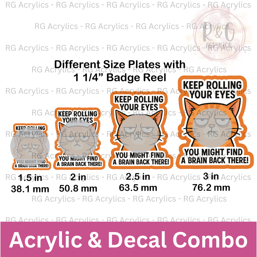 Show sarcastic humor with the Keep Rolling Your Eyes cat acrylic & decal combo. A funny, sassy design for badge reels, gifts, or stickers.